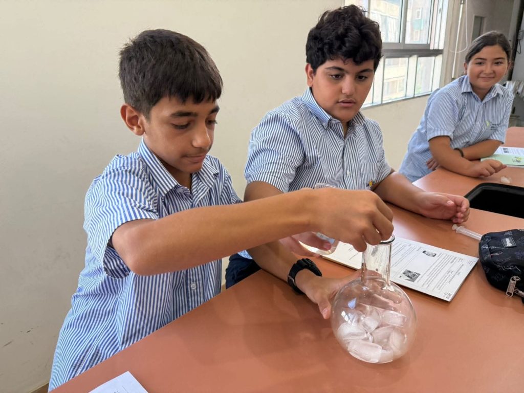 Les EB7 ont transformé la chimie en terrain de jeu : glaçons, seringues, verrerie et ballons au service de la découverte des propriétés des états de la matière. Chaque expérience révélait un secret. Fascinés et curieux, ils ont vu la science prendre vie sous leurs doigts!